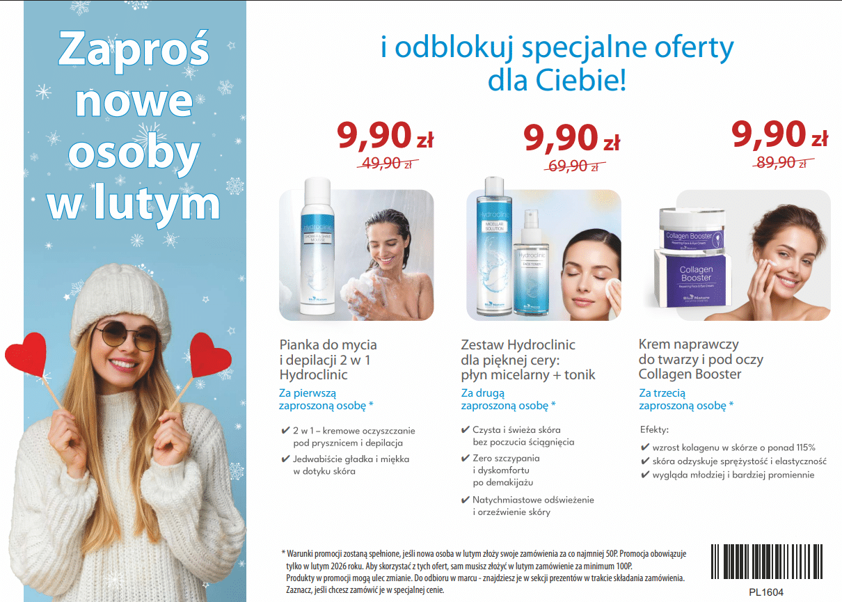 W lutym zaproś nowe osoby i odblokuj dla siebie dostęp do wspaniałych produktów w świetnej cenie – za jedyne 9,90 zł możesz zgarnąć doskonałe kosmetyki, a nawet cały zestaw!